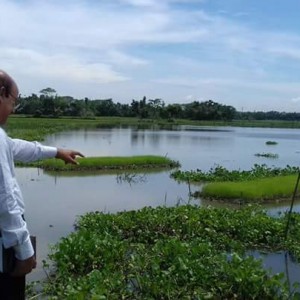 ভাসমান বীজতলা পরিদর্শন ও প্রয়োজনীয় পরামর্শ প্রদান করেন কৃষিবিদ মো. হাবিবুর রহমান, উপপরিচালক,ডিএই,নেত্রকোণা। কৃষক: পুর্নেন্দু সরকার, সঞ্চয় কুমার পন্ডিত, ইয়াদ অালী; ব্লক: বারহাট্টা, নেত্রকোণা।